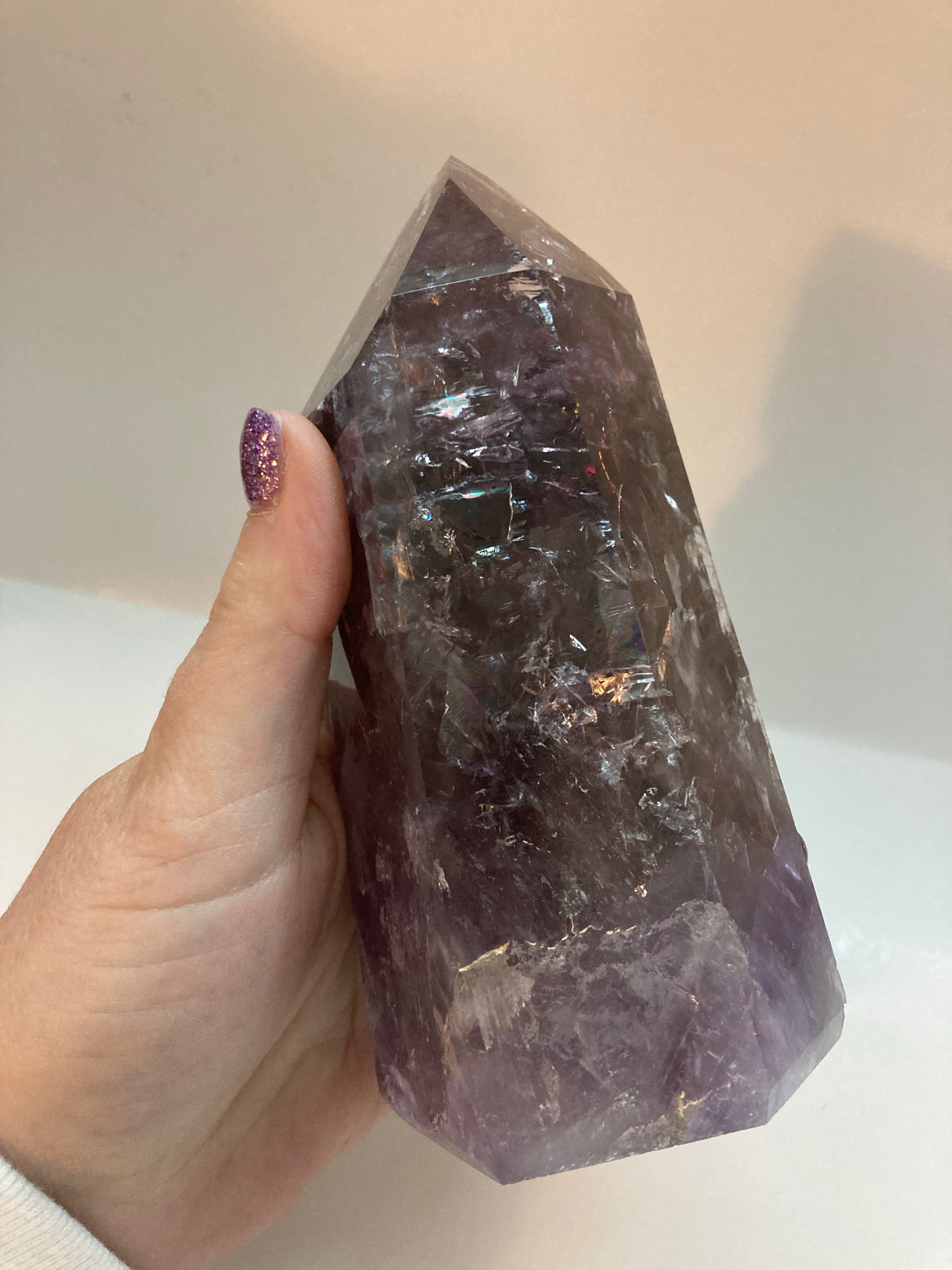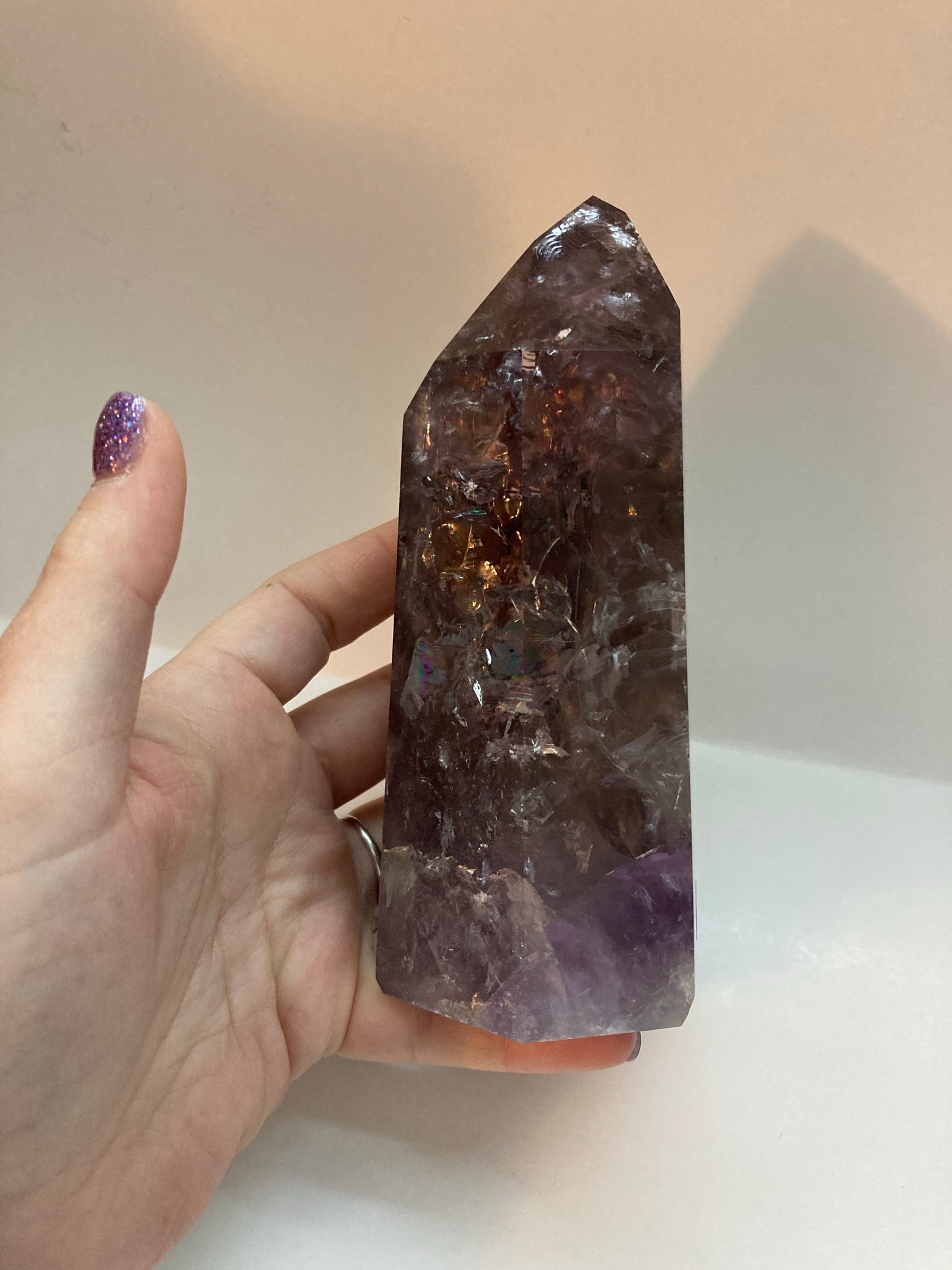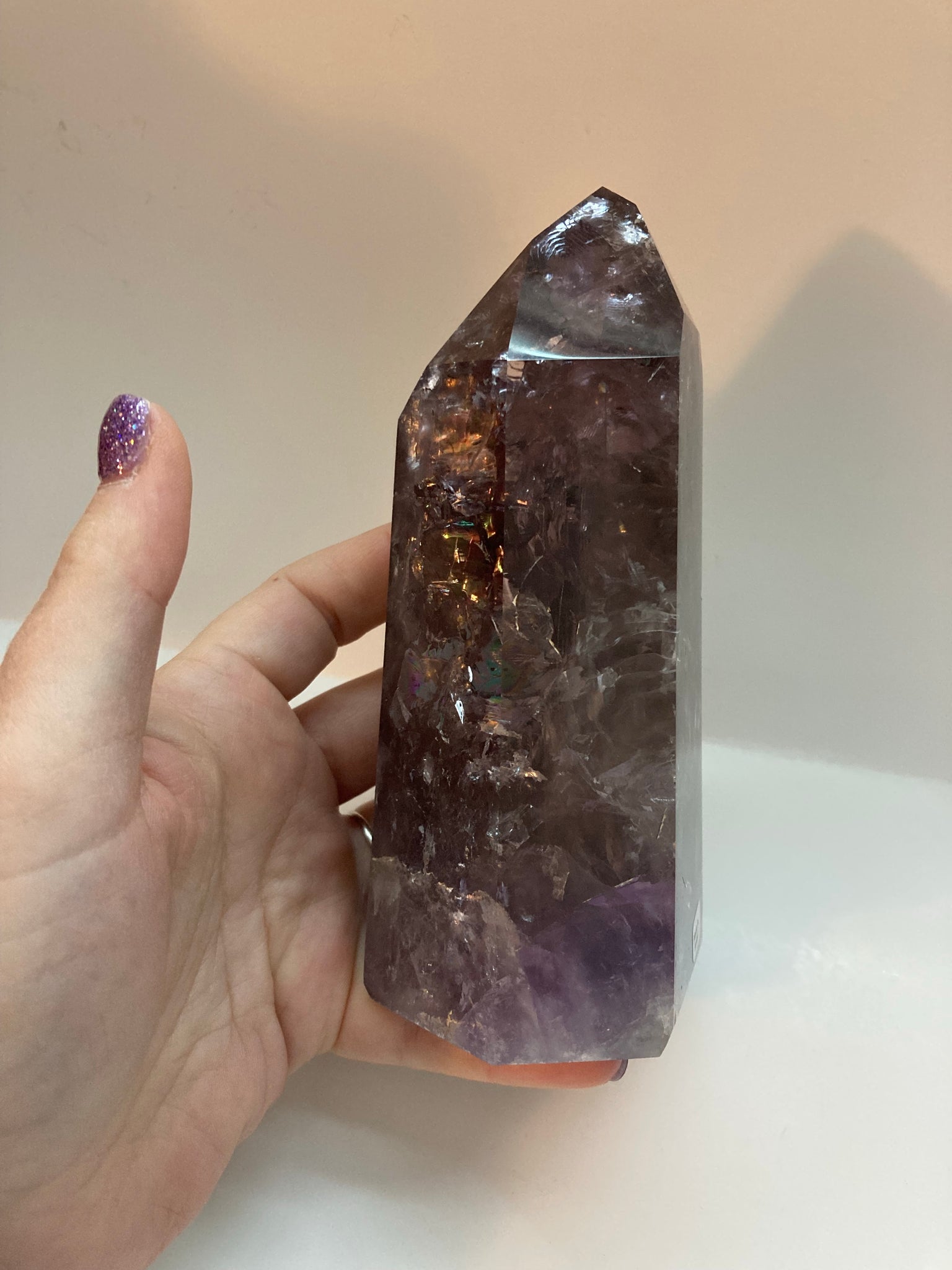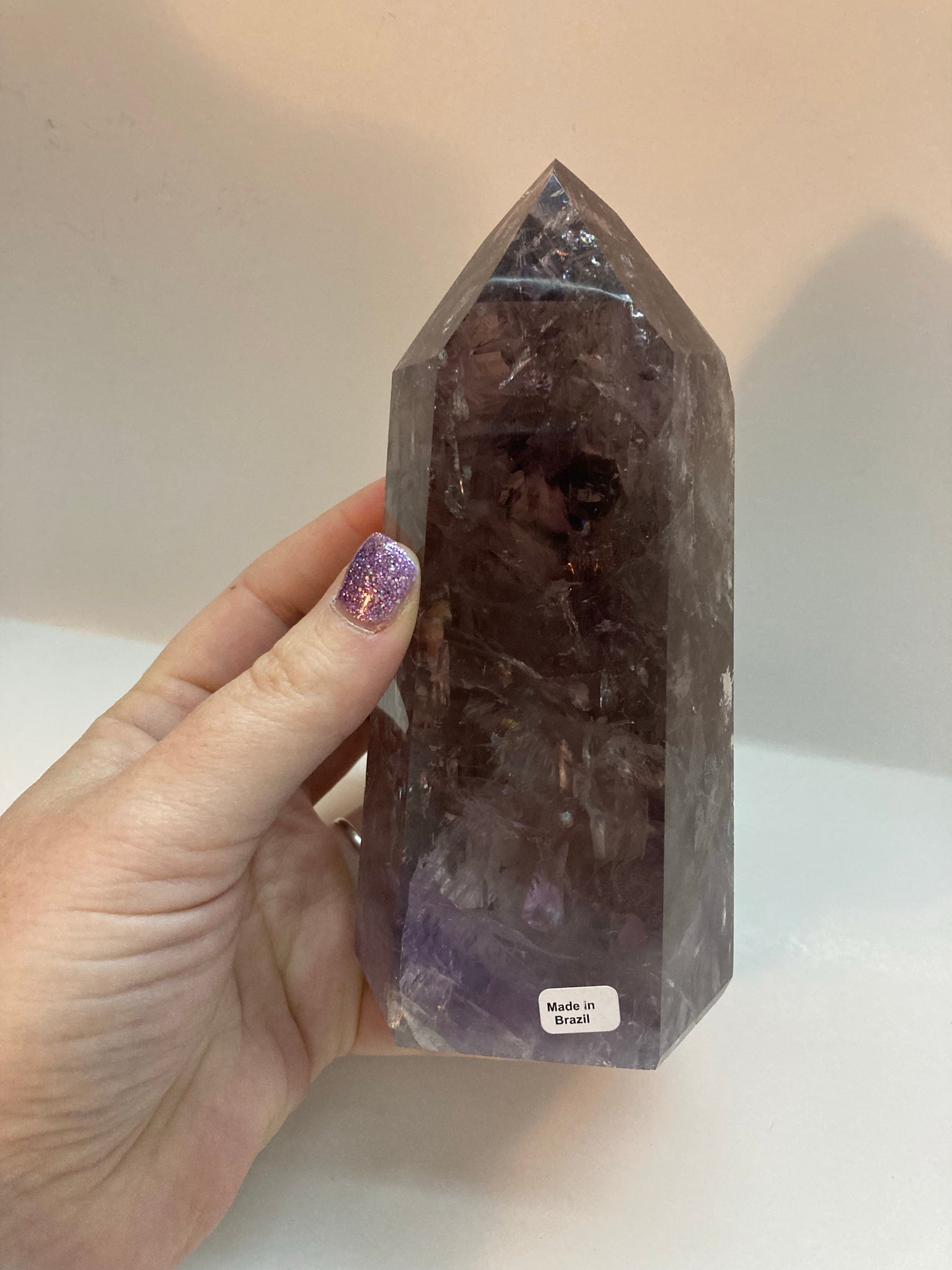The Brazilian Amethyst Tower with Rainbows is a stunning and unique piece that showcases the beauty of Brazilian craftsmanship. Made from high-quality amethyst crystal, this tower emits a special iridescence that creates rainbows when illuminated. The intricate design and vibrant colors make it a perfect focal point for any space, adding a touch of natural beauty and elegance to its surroundings. Perfect for collectors or those looking to add a statement piece to their home decor.