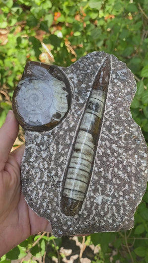 Fossil Ammonite & Orthocerus Standing Home Decor Piece