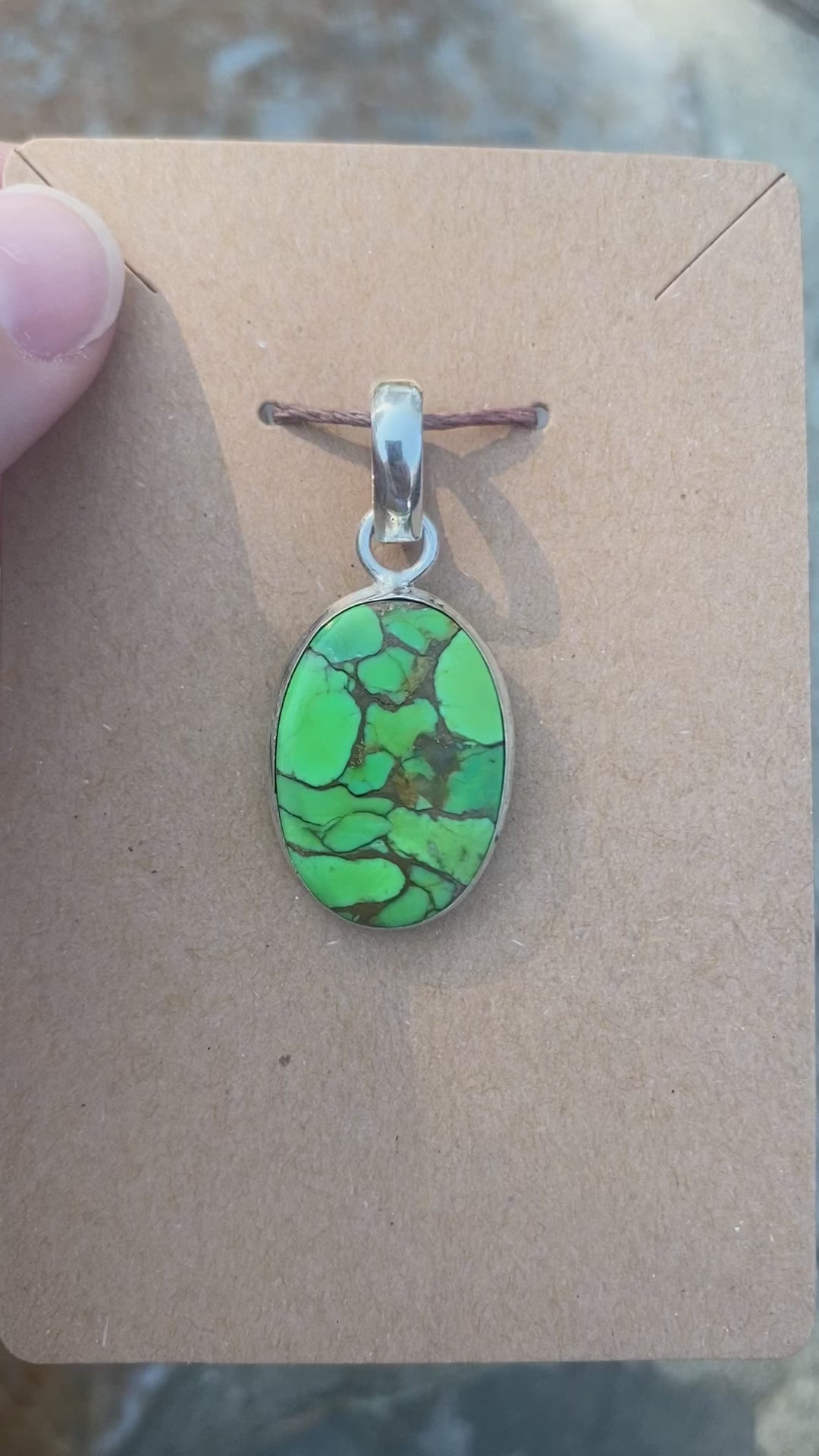 .925 Sterling Silver Green Copper Turquoise Pendant