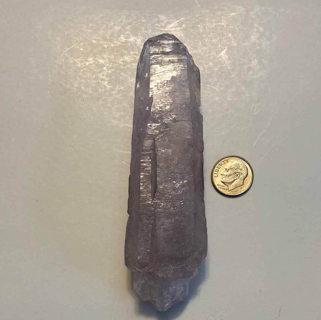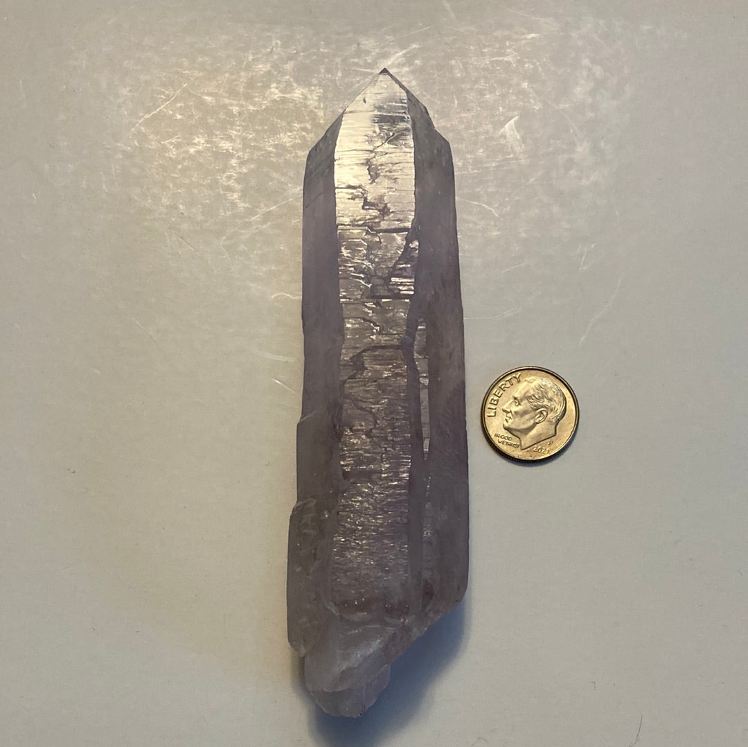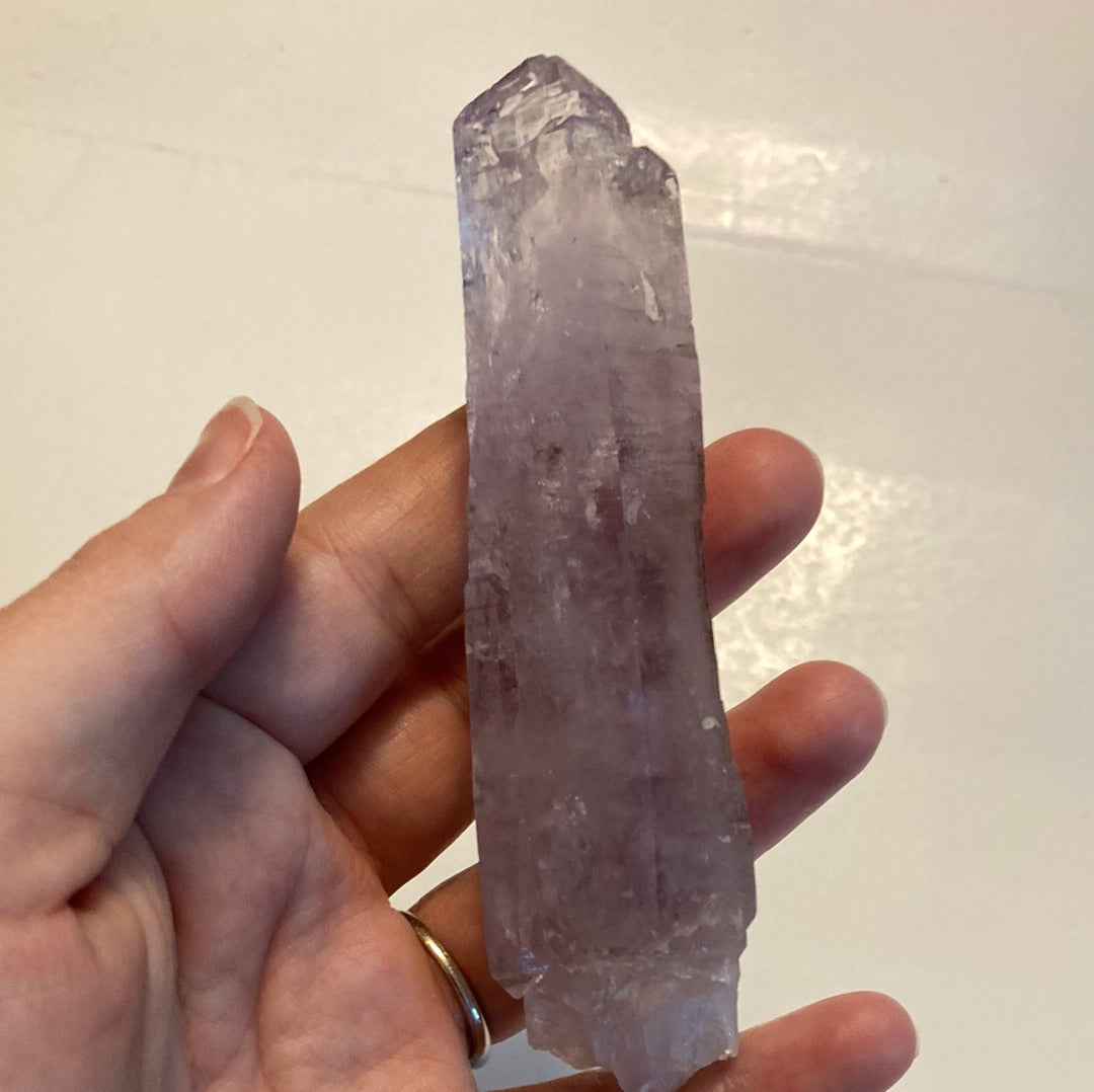 This stunning Vera Cruz Amethyst point is a naturally formed crystal known for its exceptional clarity and gentle violet glow. Sourced from the renowned Vera Cruz region of Mexico, these amethyst crystals are treasured for their elegant, elongated formations and luminous energy. Measuring approximately 114.7 mm x 23.9 mm and weighing 4.7 oz, this piece makes a beautiful addition to any crystal collection, meditation space, or altar.
